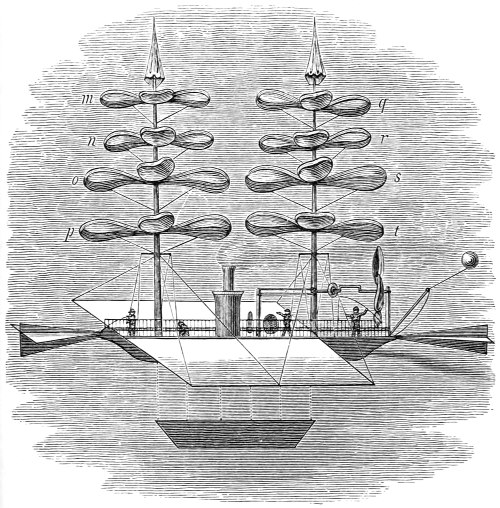 106 Mons. Nadar, in a paper written in 1863, enters very fully into the subject of artificial flight, as performed by the aid of the screw. Liberal extracts are given from Nadar’s paper in Astra Castra, by Captain Hatton Turner. London, 1865, p. 340. To Turner’s handsome volume the reader is referred for much curious and interesting information on the subject of Aërostation.