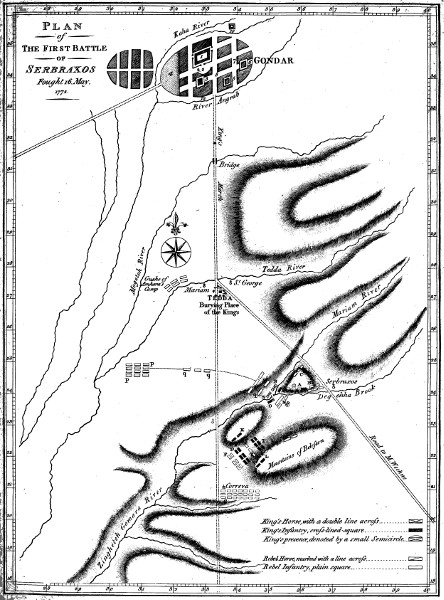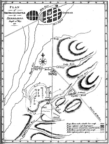 RETURN FROM THE SOURCE OF THE NILE TO GONDAR—TRANSACTIONS THERE—BATTLE OF SERBRAXOS, AND ITS CONSEQUENCES—THE AUTHOR PREPARES TO LEAVE ABYSSINIA.