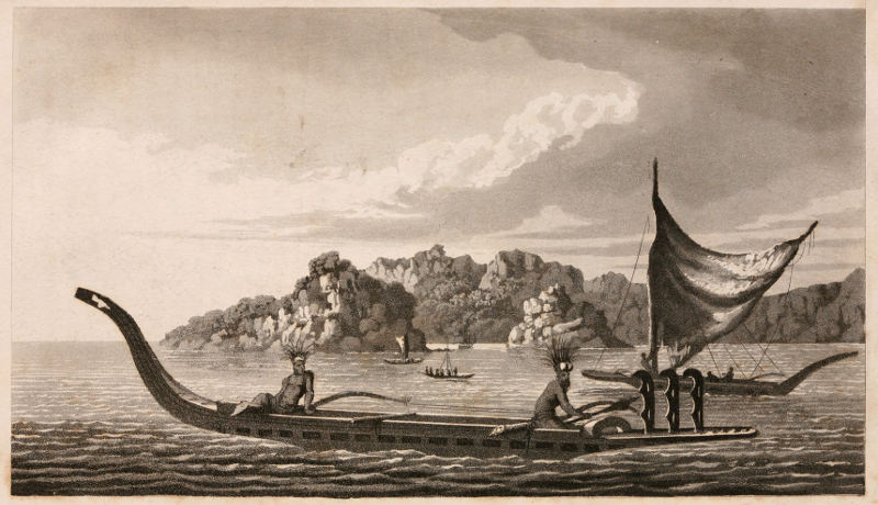 In one of the canoes we had taken, was a chief, a friend of Mr. Forster’s, who had hitherto called himself an Earee, and would have been much offended if any one had called his title in question; also three women, his wife and daughter, and the mother of the late Toutaha. These, together with the canoes, I resolved to detain, and to send the chief to Otoo, thinking he would have weight enough with him to obtain the return of the musket, as his own property was at stake. He was, however, very unwilling to go on this embassy, and made various excuses, one of 331which was his being of too low a rank for this honourable employment; saying he was no Earee, but a Manahouna, and, therefore, was not a fit person to be sent; that an Earee ought to be sent to speak to an Earee; and as there were no Earees but Otoo and myself, it would be much more proper for me to go. All his arguments would have availed him little, if Tee and Oedidee had not, at this time, come on board and given a new turn to the affair, by declaring that the man who stole the musket was from Tiarabou, and had gone with it to that kingdom, so that it was not in the power of Otoo to recover it. I very much doubted their veracity, till they asked me to send a boat to Waheatoua, the king of Tiarabou, and offered to go themselves in her, and get it. I asked why this could not be done without my sending a boat? They said it would not otherwise be given to them.