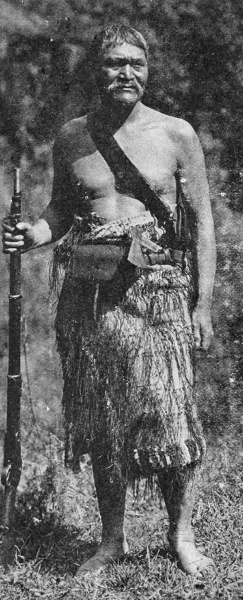 "It was Titokowaru's right eye that had been destroyed by a bullet in some engagement. He was about five feet nine in height and somewhat spare and muscular, with fine bone, an alert, active man, but by no means good-looking. His skin was rather darker than the general run of Maoris, and his nose low in the bridge, with wide nostrils. His face rarely lit up pleasantly, and he was of reserved manner. His knowledge of tikanga Maori was considerable, and during the war he conducted the usual ceremonies to make the war-parties successful.