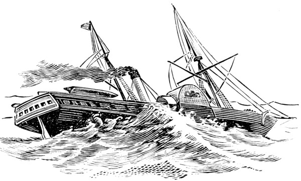 [25] The “Bourgogne” Disaster.—Since the sinking of the Eutopia in Gibraltar Bay in 1891, no such marine disaster has occurred as that which recently befell the SS. Bourgogne—a, tragedy in some respects the most appalling that has ever been recorded. This vessel of 7,795 tons—one of the finest of the French line of steamers—sailed from New York for Havre on the 2nd of July, 1898, with a ship’s company, including passengers and crew, of 726 souls. Early on the morning of the 4th, when about sixty miles south of Sable Island, during a dense fog, and while running at the rate of some eighteen knots an hour, she came into collision with the British sailing ship Cromartyshire, of 1,554 tons, and in a very short time foundered, carrying down with her about 520 persons. Had it not been for her collision bulkhead the Cromartyshire must have sunk, too. As it was, she was badly damaged, but hove to all day in the hope of picking up survivors. In the meantime the Allan SS. Grecian came up to the scene of the disaster, the rescued passengers were taken on board, and the disabled ship was towed into Halifax harbour. The survivors were the purser of the steamship, three engineers, thirty of the crew, and 170 passengers—204 in all. Of the seventy-two ladies in the first cabin only one was saved. Captain Deloncle, commander of the Bourgogne, was a lieutenant in the navy, and a knight of the Legion of Honour, having under him a competent staff of officers who appear to have done what they could to save the lives of others. All of them went down with their ship into the sailor’s grave. The loss of life was appalling, but even more heartrending were the accounts given of the barbarous conduct of some of the steerage passengers and sailors in the terrible struggle for self-preservation.