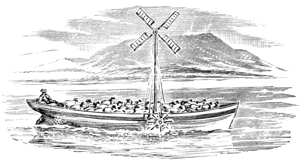 [44] The setting-pole might be twenty-five feet long, heavily shod with iron at one end and at the other fitted with a rounded knob. This pole was dropped into the water at the bow of the boat, and the boatman having put his shoulder to the other end of it, facing the stern, and pushing with all his might, walked to the farther end, cleats being fastened to the deck to give him foothold. By the time he reached the stern the barge had advanced exactly its own length, when he withdrew the pole, dragged it to the bow and repeated the process. Two or three men on each side of the boat would be similarly employed, and so the barge dragged its slow length along, much after the fashion of the horse-boat, only that the horse tugged at a stationary post while the men pushed from it.