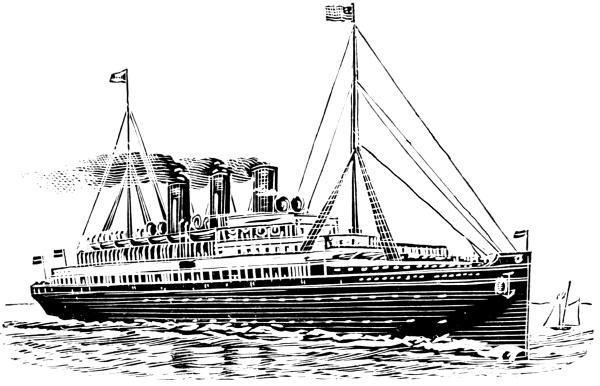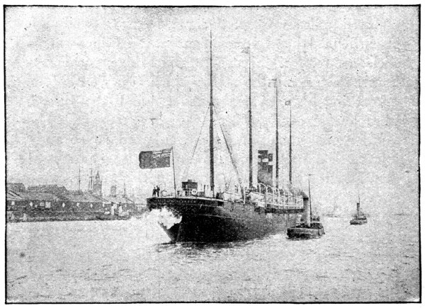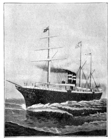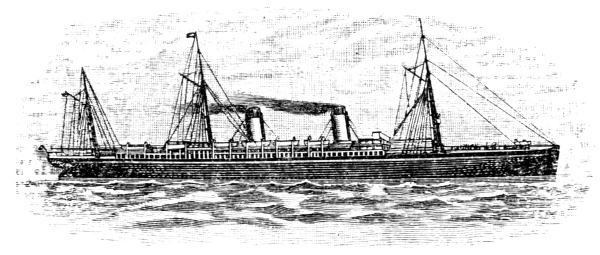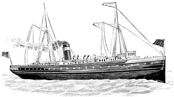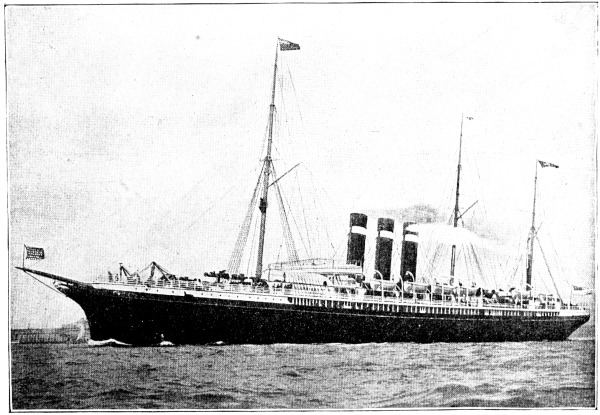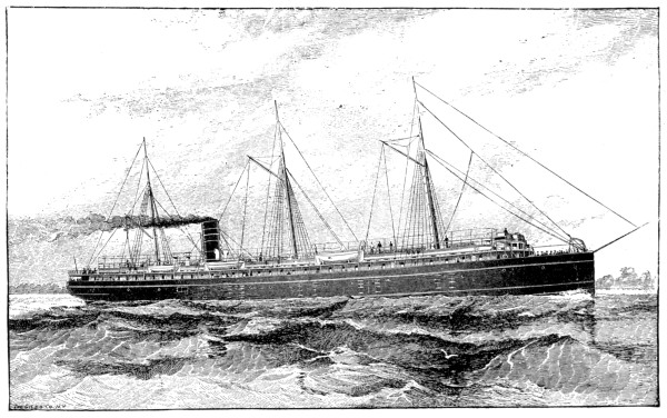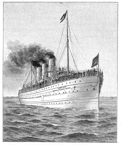 [19] The Germanic has since been overhauled and has now a set of triple expansion engines, making her a seventeen-knot boat. In July, 1895, she crossed from Queenstown to New York in 6 days, 23 hours, 45 minutes.