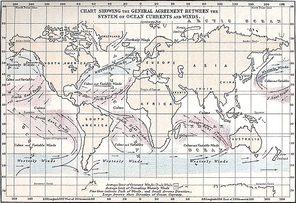 | Ocean-Currents not due alone to the Trade-winds.—An Objection by Maury.—Trade-winds do not explain the Great Antarctic Current.—Ocean-currents due to the System of Winds.—The System of Currents agrees with the System of the Winds.—Chart showing the Agreement between the System of Currents and System of Winds.—Cause of the Gibraltar Current.—North Atlantic an immense Whirlpool.—Theory of Under Currents.—Difficulty regarding Under Currents obviated.—Work performed by the Wind in impelling the Water forward.—The Challenger’s crucial Test of the Wind and Gravitation Theories.—North Atlantic above the Level of Equator.—Thermal Condition of the Southern Ocean irreconcilable with the Gravitation Theory | 210 |