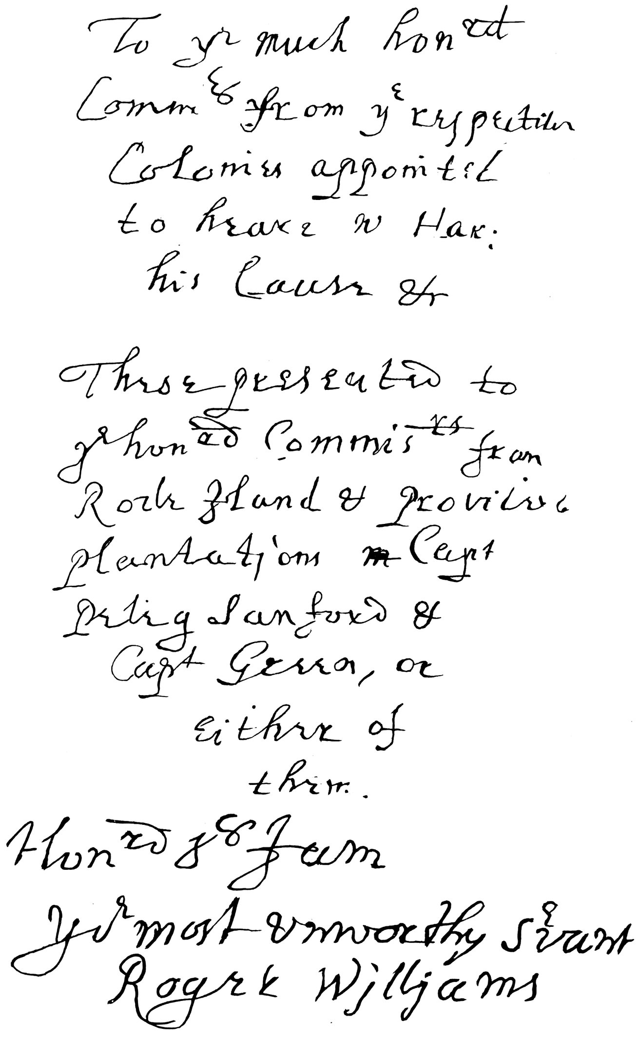 FAC SIMILE OF THE HANDWRITING OF ROGER WILLIAMS.