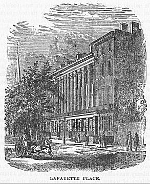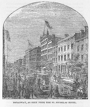 The dog and bird men haunt the neighborhood of the Astor House and St. Nicholas hotels. They get high prices for their pets. Dogs sell readily. It is the fashion in New York to discourage the increase of families, and to attempt to satisfy the half-smothered maternal instinct by petting these dumb creatures.