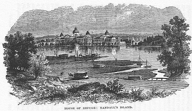 This establishment is located on Ward’s Island, in the Harlem River, and consists of several large buildings for hospitals, nurseries, and other purposes. It has a farm of one hundred and six acres attached to it. The destitute emigrants are sent to this establishment, as soon as their condition is ascertained, and cared for until they either obtain employment, or are provided for by their friends in this country, or are sent to their original destinations in the West at the expense of the Commissioners. Medical attendance is provided at the Landing Depot, and is free to all needing it. Serious cases are sent to the hospital on Ward’s Island, where good medical skill and attendance are furnished.