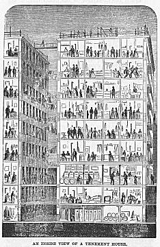 The avenues on the eastern and western extremities of the city are the abodes of poverty and want, and often of vice, hemming in the wealthy and cleanly sections on both sides. Poverty and riches are close neighbors in New York. Only a stone’s throw back of the most sumptuous parts of Broadway and Fifth avenue, want and suffering, vice and crime, hold their courts. Fine ladies can look down from their high casements upon the squalid dens of their unfortunate sisters.