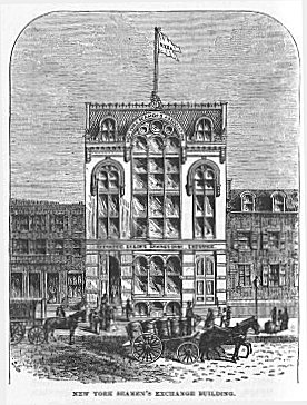 The Custom House building was formerly the Merchants’ Exchange. It is one of the handsomest structures in the city, and its purchase cost the General Government one million of dollars in gold. The building is constructed of solid granite, with a fine portico and colonnade in front. If is fire-proof throughout. It occupies the entire block bounded by Wall street, Exchange Place, William street, and Hanover street. Its dimensions are a depth of two hundred feet, a frontage of one hundred and forty-four feet, and a rear breadth of one hundred and seventy-one feet. The top of the central dome is one hundred and twenty-four feet from the ground. The main entrance is on Wall street, but there are entrances on every side. The Rotunda occupies the space beneath the central dome, and is one of the finest interiors in the country.