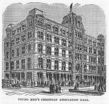 The letters “Y.M.C.A.” are familiar to every city and town of importance in the Union, and are well known to be the initials of one of the most praiseworthy organizations in the world. It is needless to enter into any general account of the Young Men’s Christian Association, and I shall devote this chapter to a description of the means employed by that body to carry on its work in the metropolis. A writer in Harper’s Magazine has aptly described the headquarters of the Association as a “Club House.” “For such it is,” he adds, “both in its appliances and its purposes, though consecrated neither to politics, as are some, to social festivities, degenerating too often into gambling and intemperance, as are others, nor to literature and polite society, as are one or two, but to the cause of good morals, of pure religion, and of Him who is the divine Inspirer of the one and the divine Founder of the other.”