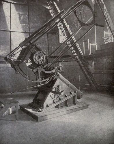 The cylindrical walls of the dome, 36¼ feet inside diameter, are double, and provided with ventilators. Opening into the dome, on the left of the entrance, are three small rooms, one of which has been fitted up as a photographic dark room, and another, containing a sidereal clock and a telephone, which communicates with the main Observatory, as a study, while the third is used for tools and storage. There is also a small room for the water engine, in case it should be used. The dome is at present supplied with water from only the middle reservoir, Kepler, which is reserved for domestic purposes and is not allowed to pass through the machinery.