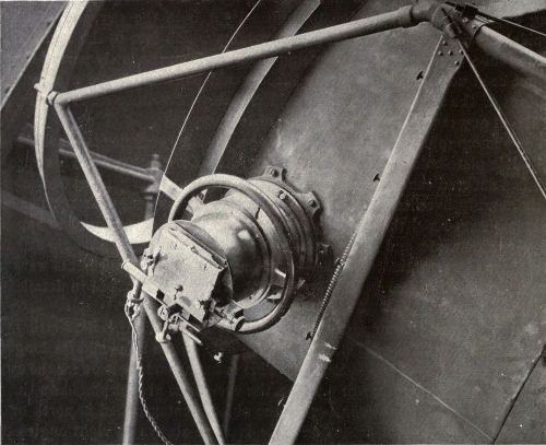 For long-exposure photography, the advantage above referred to is obvious, but it is attended by certain disadvantages. One of these is that a very much larger dome is required than for the usual form of mounting. Another is the great amount of dead weight which the axes must carry; for the mirror, instead of helping to counterpoise the upper end of the tube, must itself be counterpoised. When anything is attached to the eye-end (and in astrophysical work one is always attaching things to the eye-end of a telescope), from ten to twenty times as much weight must be placed in the counterpoise boxes below the declination axis. Where room is to be found for the weights required to counterpoise the Bruce spectrograph, is a problem which I have not yet succeeded in solving.