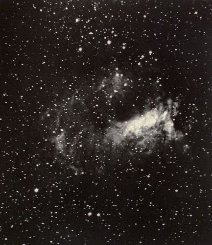 In the original negatives of subjects 10 and 12, there are faint dark rings immediately surrounding some of the stars in the denser parts of the nebulosity. This effect has no doubt been accentuated in the subsequent photographic processes. On the plates of these two subjects in the completed volume, these rings are very distinct and give rise to a suspicion that the effect has been enhanced by the engraver. A critical examination of the prints seems to confirm this view. In the original proofs these rings were inconspicuous and were not noticed. The processes of steel-facing and printing appear to have increased the effect markedly, as it is much stronger on the sheets printed for the edition than in any of the early proofs.