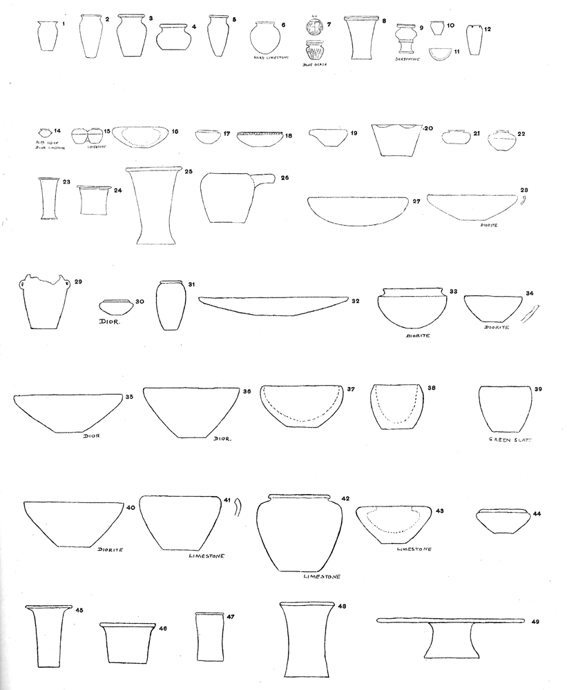 | VI. | Diorite, alabaster and pottery vessels of Old Empire (photographs). |