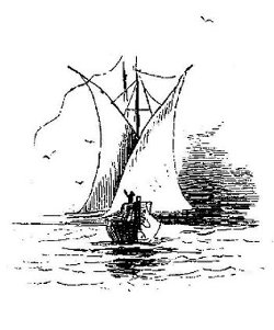 The rig of the vessel in question was latine, perhaps the most picturesque of all that the ingenuity of man has invented as the accessory of a view, whether given to the eye by means of the canvas, or in its real dimensions and substance. Its position, too, was precisely that which a painter would have chosen as the most favorable to his pencil, the little felucca running before the wind, with one of its high pointed sails extended on each side, resembling the pinions of some enormous bird that was contracting its wings as it settled toward its nest. Unusual symmetry was apparent in the spars and rigging; while the hull, which was distinguished by lines of the fairest proportions, had a neatness and finish that denoted the yacht of a noble.