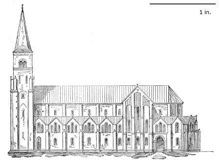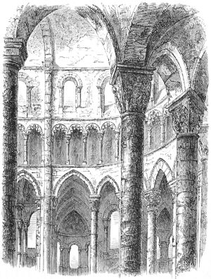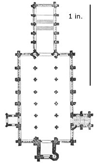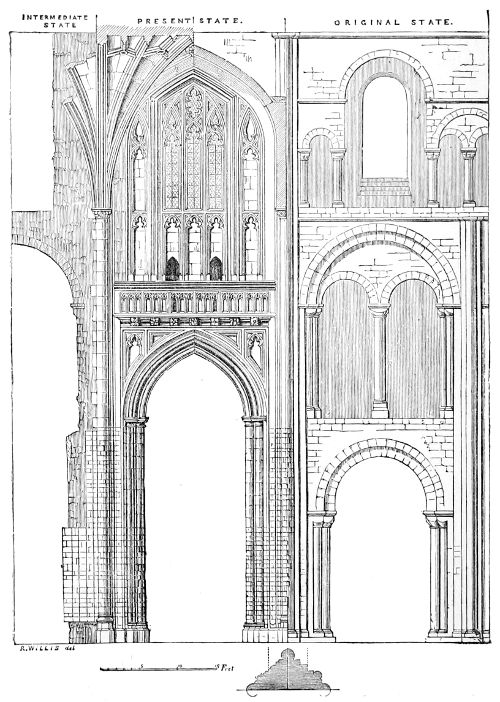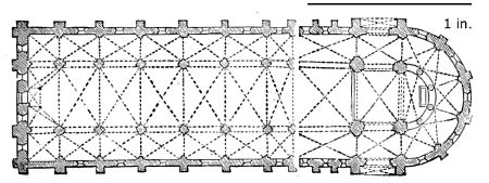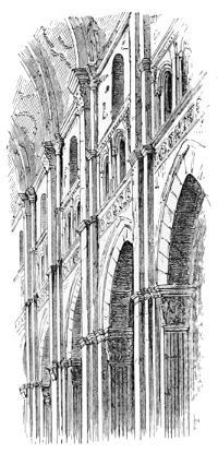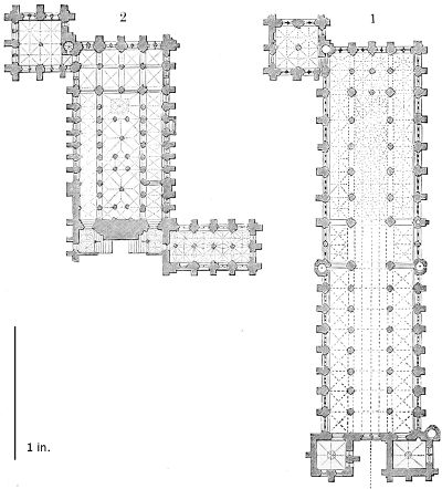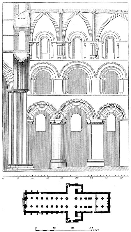 98. The internal dimensions of Durham Cathedral are 413·10 feet, exclusive of the Galilee. The nave is 81 feet wide, the choir, 77·2. (Billings.)