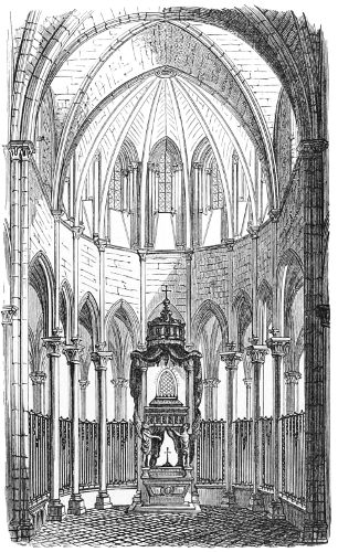 136. The Spanish arrangement has recently been adopted in Westminster Abbey, more by accident than design; with an effect as disastrous as anything in Spain, and apparently as little felt. In monastic churches the choir is always in a gallery above the west doorway.