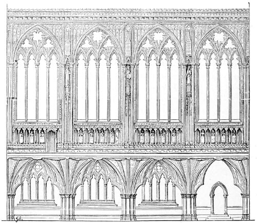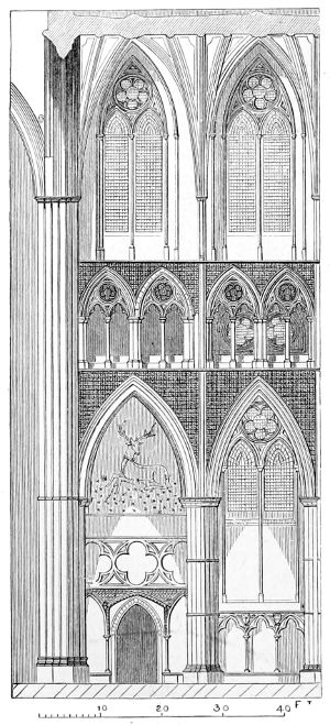 105. In Woodcut No. 822 the right-hand bay is that of the nave generally, the left-hand bay is adapted to the greater width of the aisle of the transept, and is less pleasingly proportioned in consequence. Woodcuts Nos. 822 and 823 are drawn to the scale of 25 feet to 1 inch, or double that usually employed for elevations in this work.