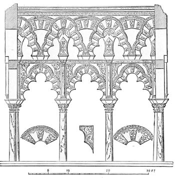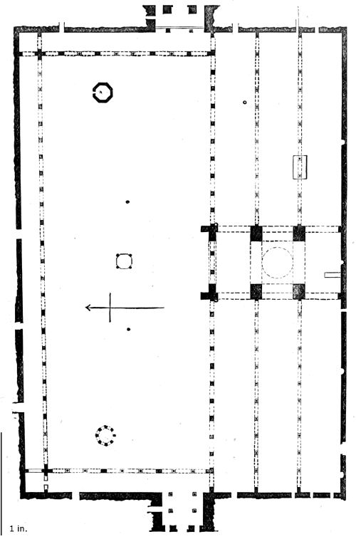 152. It should be noted that all these arcades run in the direction of the Kibleh or Mecca wall, and the same principle is observed at Kerouan, Cordoba, and other mosques built entirely for Mahomedan worship.