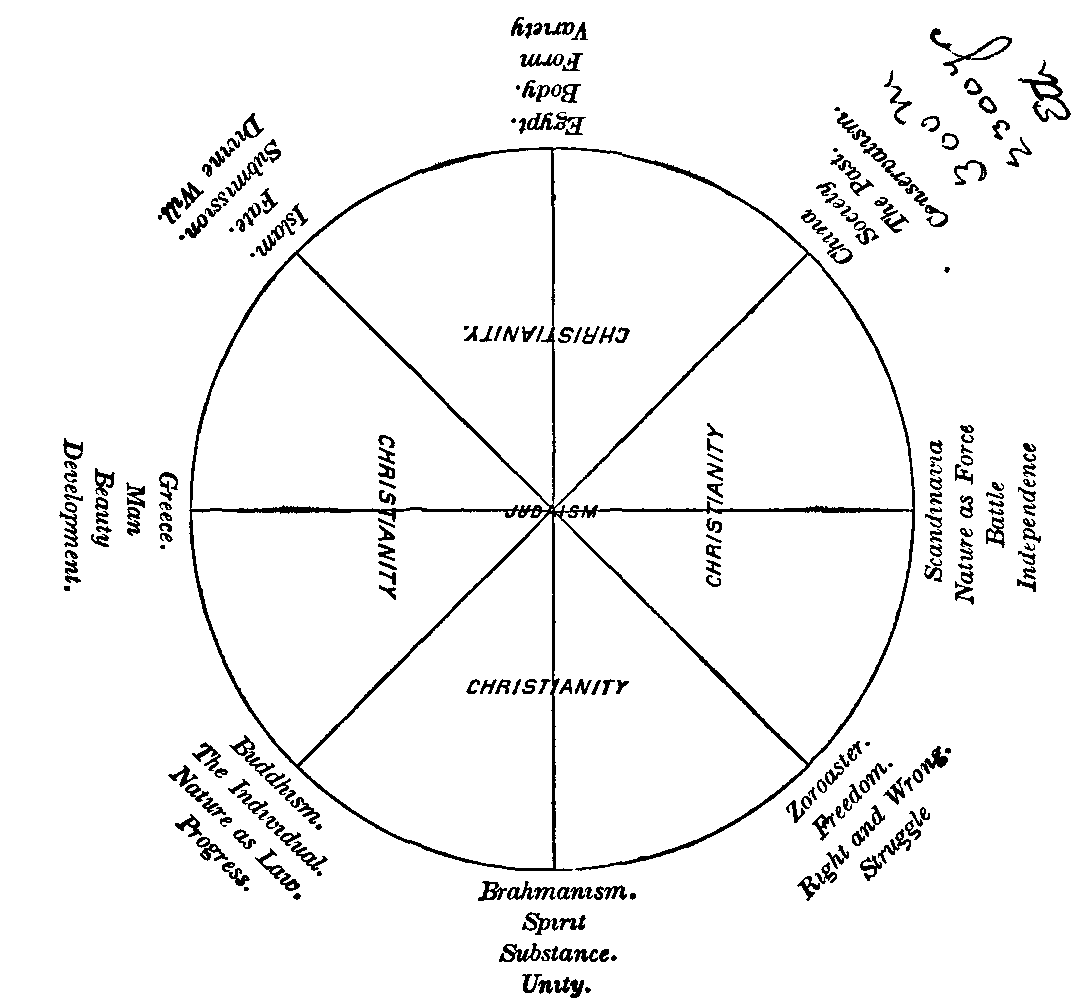 The first six chapters of the present volume are composed from six articles prepared for the Atlantic Monthly, and published in that magazine in 1868. They attracted quite as much attention as the writer anticipated, and this has induced him to enlarge them, and add other chapters. His aim is to enable the reader to become acquainted with the doctrines and customs of the principal religions of the world, without having to consult numerous volumes. He has not come to the task without some preparation, for it is more than twenty-five years since he first made of this study a speciality. In this volume it is attempted to give the latest results of modern investigations, so far as any definite and trustworthy facts have been attained. But the writer is well aware of the difficulty of being always accurate in a task which involves such interminable study and such an amount of details. He can only say, in the words of a Hebrew writer: "If I have done well, and as is fitting the story, it is that which I desired; but if slenderly and meanly, it is that which I could attain unto."