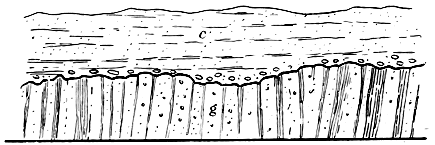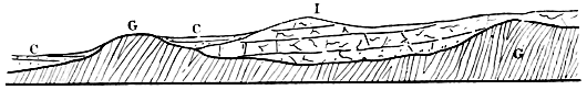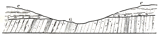 [C] The geological reader hardly requires to be reminded that many of the minor streams would have their courses determined, or greatly modified, by the geological structure of the ground. Thus, such streams often flow along the “strike” and other “lines of weakness,” and similar causes, doubtless, influenced the main rivers during the gradual excavation of their valleys.