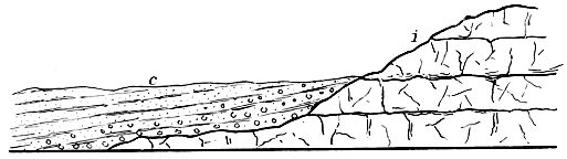 [DM] It may be objected that the conglomerates were probably not marine, but deposited in lakes, the beds of which may have been much above sea-level. But from all that we know of the Old Red Sandstone of Scotland it would appear that the lakes of the period now and again communicated with the sea, and were probably never much above its level.
