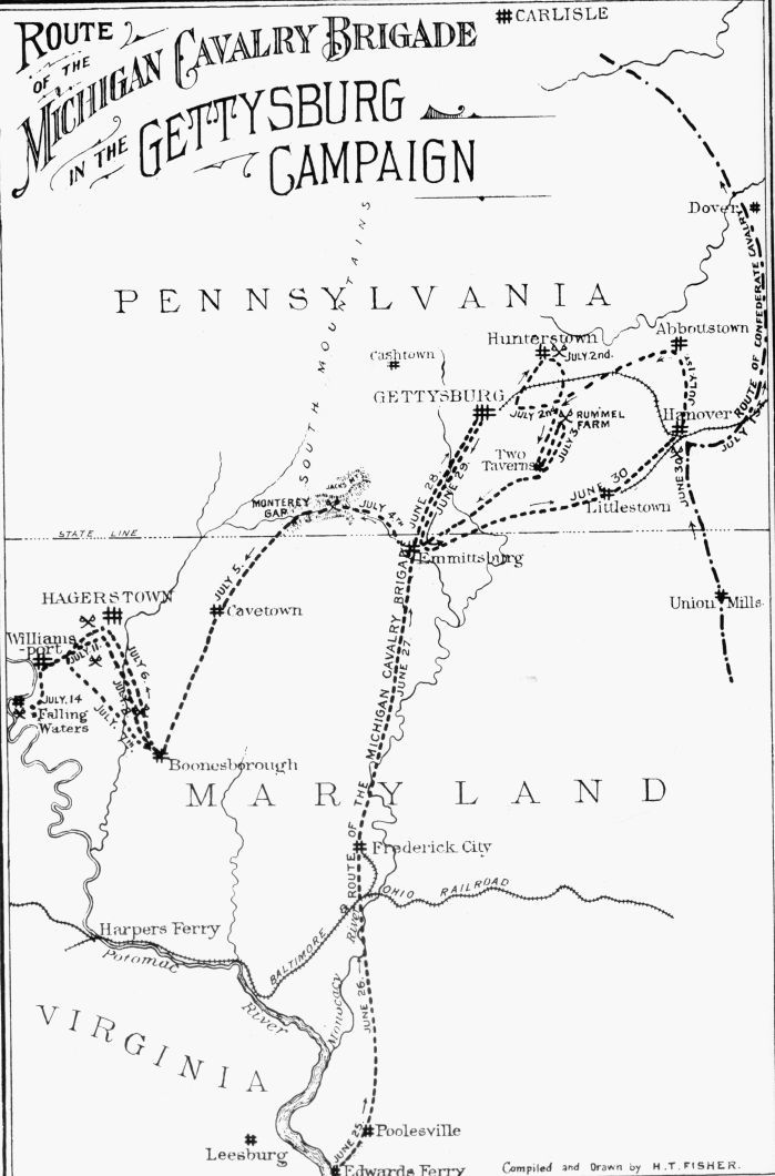- Route of the Michigan Cavalry Brigade in the Gettysburg Campaign