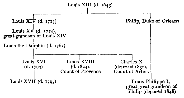 [436] The son of Louis XVI had been imprisoned and maltreated by the terrorists. He died while still a boy in 1795, but nevertheless takes his place in the line of French kings as Louis XVII.