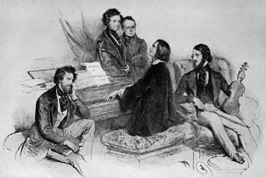 It is a thrice-told tale that several estimable Hungarian magnates raised a purse for the boy, sent him with his father to Vienna, where he studied the piano with the pedagogue Carl Czerny, that indefatigable fabricator of finger-studies, and in theory with Salieri. He was kissed by the aged Beethoven on the forehead—Wotan saluting young Siegfried—though Schindler, ami de Beethoven, as he dubbed himself, denied this significant historical fact. But later Schindler pitched into Liszt for his Beethoven interpretations, hotly swearing that they were the epitome of unmusical taste. The old order changeth, though not old prejudices. Liszt waxed in size, technique, wisdom. Soon he was given up as hopelessly in advance of his teachers. Wherever he appeared they hailed him as a second Hummel, a second Beethoven. And he improvised. That settled his fate. He would surely become a composer. He went to Paris, was known as le petit Litz, and received everywhere. He became the rage, though he was refused admission to the Conservatoire, probably because he displayed too much talent[14] for a boy. He composed an opera, Don Sancho, the score of which has luckily disappeared. Then an event big with consequences was experienced by the youth—he lost his father in 1827. (His mother survived her husband until 1866.) He gave up concert performances as too precarious, and manfully began teaching in Paris. The revolution started his pulse to beating, and he composed a revolutionary symphony. He became a lover of humanity, a socialist, a follower of Saint-Simon, even of the impossible Père Prosper Enfantin. His friend and adviser was Lamenais, whose Paroles d'un Croyant had estranged him from Rome. A wonderful, unhappy man. Liszt read poetry and philosophy, absorbed all the fashionable frenzied formulas and associated with the Romanticists. He met Chopin, and they became as twin brethren. François Mignet, author of A History of the French Revolution, said to the Princess Cristina Belgiojoso of Liszt: "In the brain of this young man reigns great confusion." No wonder. He was playing the piano, composing, teaching, studying the philosophers, and mingling with enthusiastic idealists who burnt their straw before they moulded their bricks. As Francis Hackett wrote of the late Lord Acton, Liszt suffered from "intellectual log-jam." But the current of events soon released him.