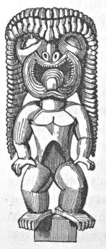 “Eighteen generations of kings previous to Kamehameha I., during the reign of Kahoukapa, or Kiana, there arrived at Hawaii, a white priest, bringing with him an idol, which by his persuasion, was enrolled in the calendar of the Hawaiian gods, and a temple erected for its service. The stranger priest acquired great influence, and left a reputation for goodness that was green in the memories of the people of Hawaii three centuries later. Another statement adds that a vessel was wrecked on the island, and the captain and his sister reached the shore, where they were kindly received and adopted into the families of the chiefs.