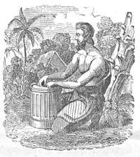 The vegetation was unequal in luxuriance. In some spots it pushed its verdure quite into the brine, which not unfrequently watered the roots of trees that overhung it. In others, broad belts of sand came between the grasses and the water. These glistened in the sun’s rays in contrast with the back ground of dense green, like burnished metal. Earth, the provident mother, had not, however, so overdone her good works, as in some of the more southern groups to provide a meal without other labor than plucking. There were fine groves of the different species of food-bearing palms,—orchards[34] of bread-fruit and other kinds of trees, from which man could derive both sustenance and material to clothe and house him; but for these purposes and the culture of the taro plant, which was his main resource, no little labor and skill were necessary.