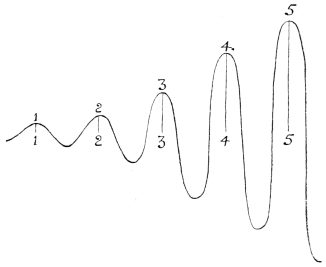 Suppose that we draw a curve AB freehand with a single undivided sweep of the pencil. By making a certain assumption—that the curve which we drew was one that might be regarded as cyclical, that is, might be repeated over and over again—we can subject it to harmonic analysis. We can decompose it into a number of other curves (CD, EF, etc.), each of which is a separate “wave” rising above and falling below the axis OX in a symmetrical manner. If we draw any vertical line MN cutting these curves, we shall find that the distance between the axis OX and the main curve AB is always equal to the algebraic sum of the distances between the axis and the other curves. These latter we call the harmonic constituents of the curve AB, supposing them to “add up” so as to form it. But AB was something quite simple and elemental and its constituents cannot be said to have existed in it when we drew it freehand; it was only by an artifice of practical utility in mathematical computations that we constructed them. It may be, of course, that the harmonic constituents of a curve had actual existence apart from the curve itself, but, in the case that we take, they certainly had not. Now we must think of our stream of consciousness in much the same way. It is something immediately experienced and elementary; it is the concomitant, if we choose so to regard it, of the external processes that go on outside our bodies. We can investigate it by thinking about it, and attending to one aspect of it after another, thus arbitrarily detaching one “part” of it from all the rest, but immediately we do this we rise above the flux of experience into the region of intellectual concepts. We have converted a multiplicity of states of consciousness, all of which co-exist along with each other, and in each other, and which have no spatial existence, into a multiplicity of states, visual, auditory, olfactory, etc., which have become separated from each other and have therefore acquired extension. This dissociation of the flux of experience is the process of conceptual analysis carried out by thought.