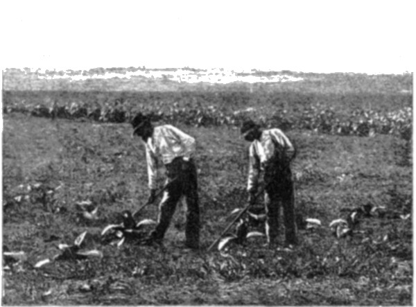 Turn to the left and follow up this valley, keeping the mountain on your left. You are not the first to take this course: the line of human ants used to creep down it in order to climb over the wall at the gap. Mark how inaccessible this wall is at every other point. Mark, also, that as you go two little black parallel iron threads follow you—a railroad, one of the greatest systems of the South. All along the mountain slope overhanging the railroad, iron ore; beyond the mountain crest, timbers and coals. [302] Observe, likewise, the features of the land: water abundant, clear, and cold; fields heavy with corn and oats; an ever-changing panorama of beautiful pictures. The farther you go the more rich and prosperous the land, the kinder the soil to grains and gardens and orchards; bearing its burden of timbers—walnut, chestnut, oak, and mighty beeches; lifting to the eye in the near distance cultivated hillsides and fat meadows; stretching away into green and shadowy valley glades; tuneful with swift, crystal streams—a land of lovely views.