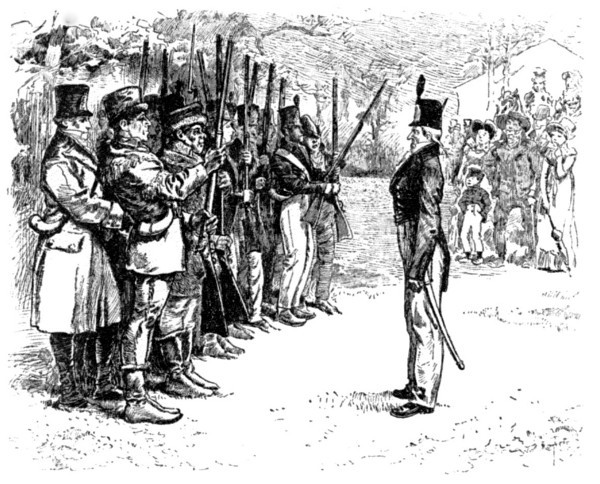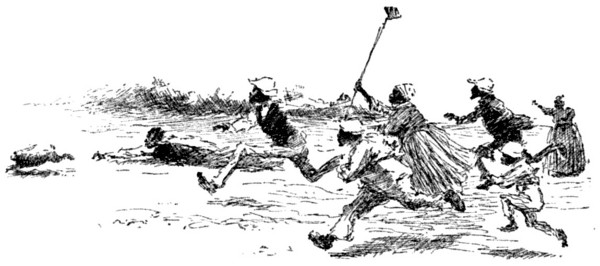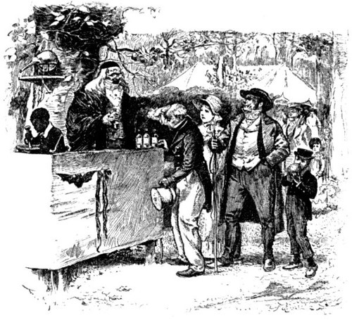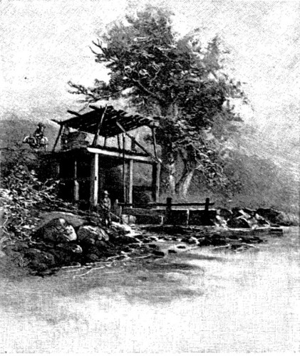 Over this road, then, and towards this town, one day, five summers ago, I was picking my course, but not without pale human apprehensions. At that time one did not visit Pineville for nothing. When I reached it I found it tense with repressed excitement. [286] Only a few days previous there had been a murderous affray in the streets; the inhabitants had taken sides; a dead-line had been drawn through the town, so that those living on either side crossed to the other at the risk of their lives; and there was blue murder in the air. I was a stranger; I was innocent; I was peaceful. But I was told that to be a stranger and innocent and peaceful did no good. Stopping to eat, I fain would have avoided, only it seemed best not to be murdered for refusing. All that I now remember of the dinner was a corn-bread that would have made a fine building stone, being of an attractive bluish tint, hardening rapidly upon exposure to the atmosphere, and being susceptible of a high polish. A block of this, freshly quarried, I took, and then was up and away. But not quickly, for having exchanged my horse for another, I found that the latter moved off as though at every step expecting to cross the dead-line, and so perish. The impression of the place was one never to be forgotten, with its squalid hovels, its ragged armed men collected suspiciously in little groups, with angry, distrustful faces, or peering out from behind the ambush of a window.