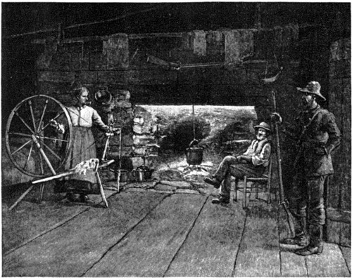 On the same trip that took me to Pineville five summers ago, I rode from that place southward towards the wall of Cumberland Mountain. I wished to climb this wall at that vast depression in it known as Cumberland Gap. It was a tranquil afternoon as I took my course over the ancient [296] Wilderness Road through the valley of the Yellow Creek. Many a time since, the memory of that ride has come back to me—the forests of magnificent timbers, open spaces of cleared land showing the amphitheatre of hills in the purple distance, the winding of a shadowy green-banked stream, the tranquil loneliness, the purity of primeval solitude. The flitting of a bird between one and the azure sky overhead was company, a wild flower bending over the water's edge was friendship. Nothing broke rudely in upon the spirit of the scene but here and there a way-side log-cabin, with its hopeless squalor, hopeless human inmates. If imagination sought relief from loneliness, it found it only in conjuring from the dust of the road that innumerable caravan of life from barbarism to civilization, from the savage to the soldier, that has passed hither and thither, leaving the wealth of nature unravished, its solitude unbroken.
