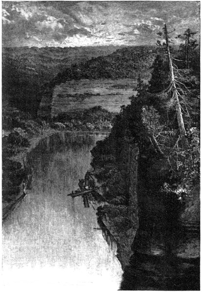 You may begin at the western frontier of Kentucky on the Mississippi River, about five hundred miles away, and travel steadily eastward across the billowy plateau of the State, going up and up all the time until you come to its base, and above its base it rises to the height of some three thousand feet. For miles before you reach it you discover that it is defended by a zone of almost inaccessible hills with steep slopes, forests difficult to penetrate, and narrow jagged gorges; and further defended by a single sharp wall-like ridge, having an elevation of about twenty-two hundred feet, and lying nearly parallel with it, at a distance of about twenty miles. Or, if you should attempt to reach this wall from the south, you would discover that from that side also it is hardly less hostile to approach. Hence it has stood in its virgin wilderness, a vast isolating [273] and isolated barrier, fierce, beautiful, storm-racked, serene; in winter, brown and gray, with its naked woods and rifts of stone, or mantled in white; in summer, green, or of all greens from darkest to palest, and touched with all shades of bloom; in autumn, colored like the sunset clouds; curtained all the year by exquisite health-giving atmospheres, lifting itself all the year towards lovely, changing skies.