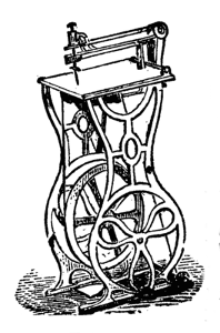 An equally valuable invention is W. J. C. & Co.'s Patented Drilling Apparatus which is with the greatest advantage combined with the Sawing Machine, enhancing and enlarging its range of usefulness, or it may be adapted to a lathe, or as a distinct machine. Its great advantages over the ordinary lathe for drilling purposes must be apparent when by the addition of this apparatus to a 5 inch centre lathe the operator is enabled to drill in the centre of three or more feet, and the drill being vertical and worked by leverage, greater accuracy and facility is ensured. For ornamental purposes it surpasses all hitherto contrived methods, not being limited to one centre around which to describe curves, angles, circles, or any other mathematical figure, the operator is at perfect liberty to describe every conceivable device the fancy can dictate.