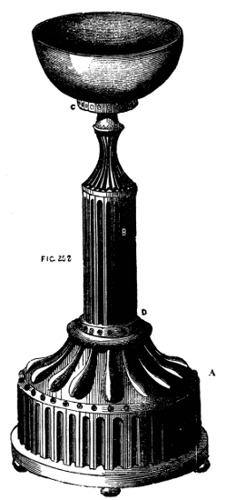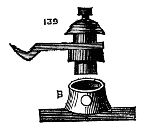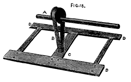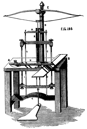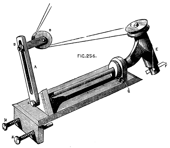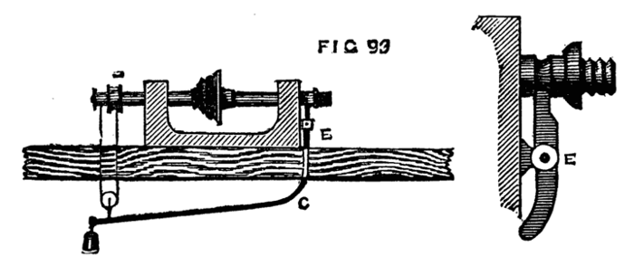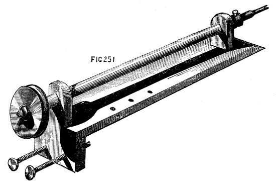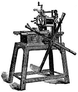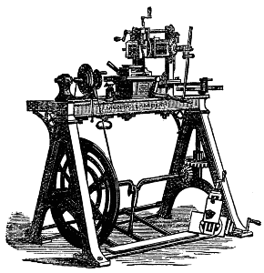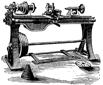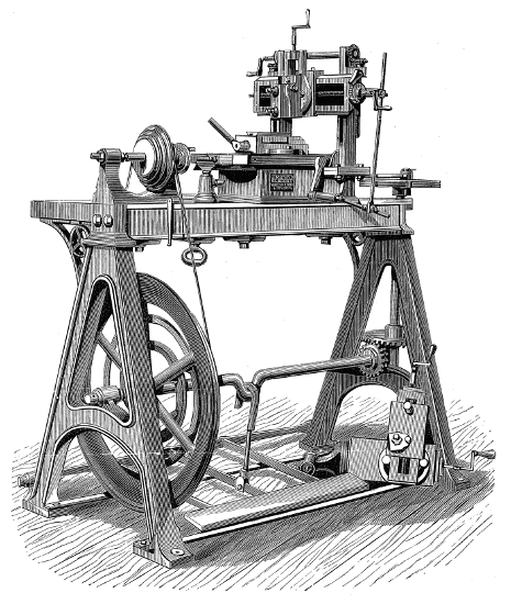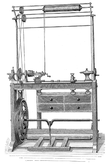 Moreover the one requires lathe fittings, which are not always to be had unless the purse is well filled, whereas the general mechanic (amateur or professional) can provide the tools needed for the other; hence we propose first of all to give some practical hints on plain hand turning of wood and metal. The ordinary form of foot lathe is well known and requires no special description, it is represented[2] in the frontispiece of this volume. There are, however, certain points of detail in its construction, to which it is necessary to direct the reader's attention.