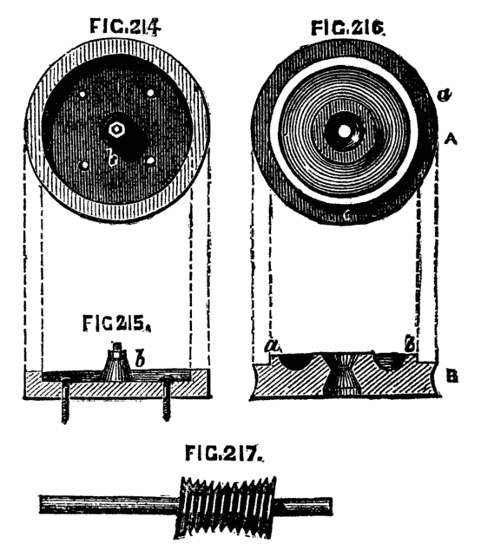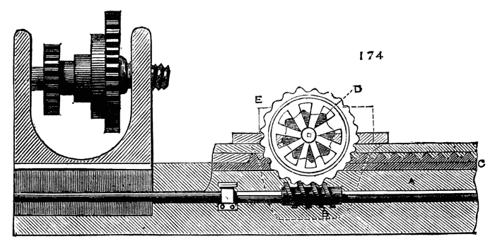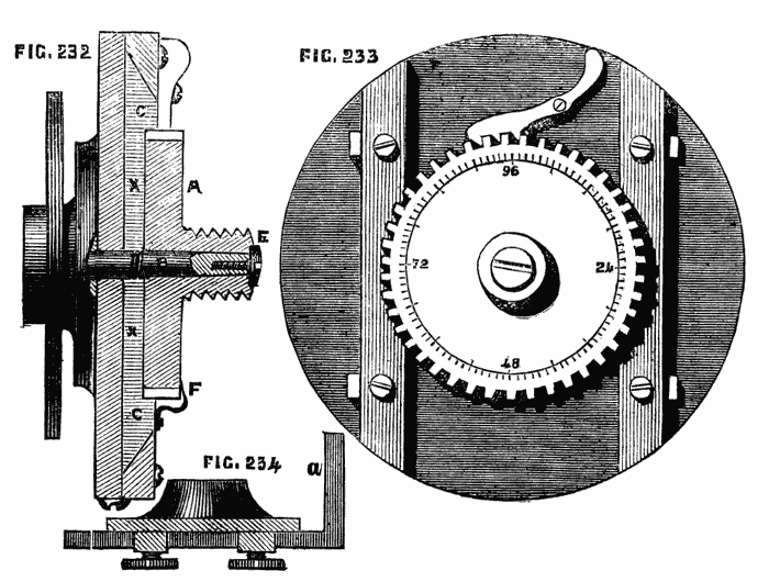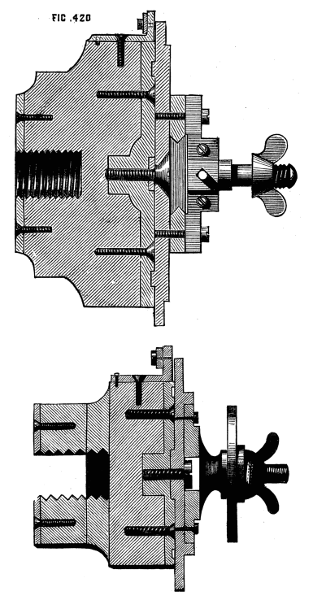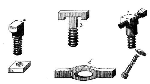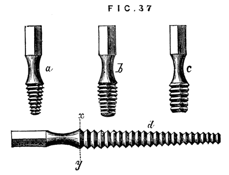 It will be found of great convenience to have the screw on the nose of the mandrel (and indeed all screws about the lathe) of standard Whit worth pitch, as taps for the chucks are thus readily obtained, and nuts and screws of the various sizes may be also procured to remedy breakages and losses. Upon this subject, however, we shall have occasion to treat more fully when we pass from the description of the lathe itself to the work that is to be accomplished by its aid.