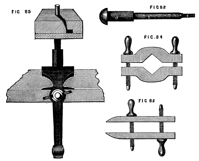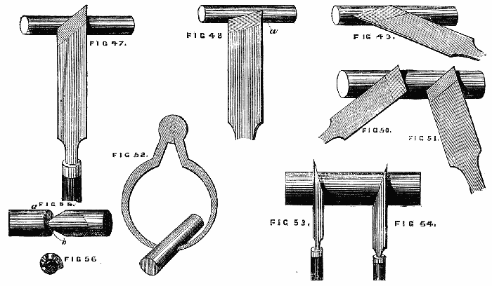 Nevertheless, the adepts in the art of turning are by no means so numerous as might be expected, and, among amateurs especially, it is rare to find work executed in first-rate style by simple hand tools requiring skill and practice in their use, so that it not unfrequently happens that a workman who can turn out exquisite specimens of ivory carving and ornamental lathe work, is but a fourth-rate hand with the gouge and chisel.
