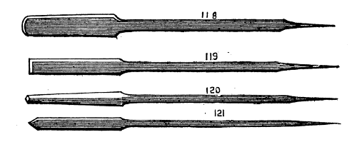 s. d. Chisels for Soft Wood, the set of 6 handled 8 0 Gouges 9 0 Tools for hardwood and metal, handled and ready for use, per dozen 15 0 Drills handled 0 7 Arm Rests Handled 2 6 Callipers from 1 0 Turner's Squares from 6 0