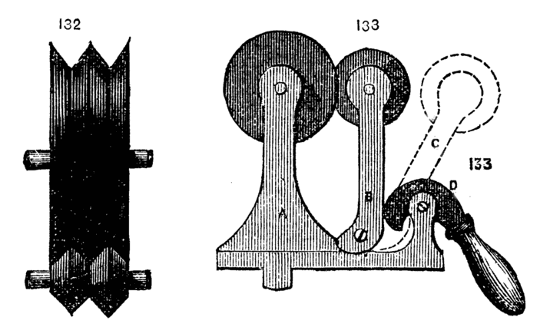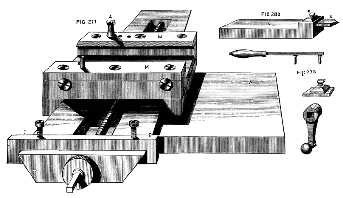 But, in addition, a valuable Appendix is now published, containing matter of great importance, contributed by one or two gentlemen, who most kindly placed their papers at the service of the author. Foremost among them stands a paper on the angles of tools, by Dodsworth Haydon, Esq., of Guildford. A clever arrangement of Lathe for Rose Engine Work, by the aid of the Eccentric[v] Chuck without Rosettes, is also added from the pen of Mr. Elias Taylor, of Brighton; and one or two matters, which did not appear so fully treated as they deserved in the body of the work, have been resumed and more fully discussed in the Appendix.