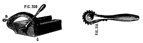 Beg to call the attention of the Public to their newly-invented Ornamental Wood and Metal Cutting Machine. Its extreme simplicity of construction precluding the possibility of speedily getting out of order, having no springs, and its peculiar adaptability to all kinds of fret-work render it at once an acquisition and an indispensability where accuracy, expedition, and high finish are required. The working is exceedingly easy, requiring no more exertion than an ordinary Sewing Machine for ladies' use, and making as little noise. Its great utility, combined with neatness of construction, fits it not only for the workshop, but the drawing-room of the amateur. The saw takes the place of a pencil in the hands of the operator, enabling him to produce the most elaborate artistic designs in wood-work. Box or other hard texture woods, 1 inch thick, are as readily sawn through as the finest veneer; metallic plates of ⅛ inch thick are also speedily pierced. Magnificent specimens executed by this machine, which have been universally admired for their extreme delicacy and perfection, and acknowledged to be unrivalled, may be seen at the inventor's address. The length of stroke of the saw can be varied to the work in hand. A simple mechanical contrivance is attached for blowing the sawdust from the saw whilst working, also a Circular Saw.