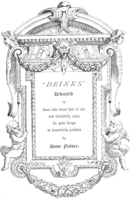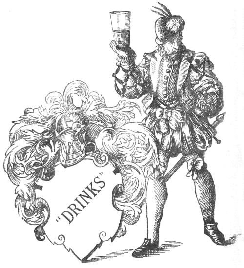 [97] The dictionary explanations of these terms are commonly unsatisfactory. The experience of the bar-tender is more than the learning of the lexicographer. Cobbler, indeed, is well explained as compounded of wine, sugar, lemon, and sucked up through a straw; but of cocktail we only learn that it is a compounded drink much used in America. The etymologies given are generally satisfactory. Julep is from گلاب rose water. Mull from mulled, erroneously taken as a past participle. According to Wedgwood, mulled is a form of mould, and mulled ale is funeral ale, potatio funerosa. Nogg is from noggin, signifying a pot, and then the strong beer which it contains. Negus is commonly known to have been the invention of Col. Francis Negus in the reign of Anne. Punch is of course from the Hindustani پانچ, signifying 5, from its five original ingredients, to wit, aqua vitæ, rose water, sugar, arrack, and citron juice. A very unsatisfactory derivation of Sangaree is from the Spanish sangria, the incision of a vein. Shrub is clearly the Arabic شرب or syrup. Smash, explained curtly as “iced brandy and water.” (Slang) is probably from the smashing of the ice; while sling seems evidently to be from the German schlingen, to swallow.