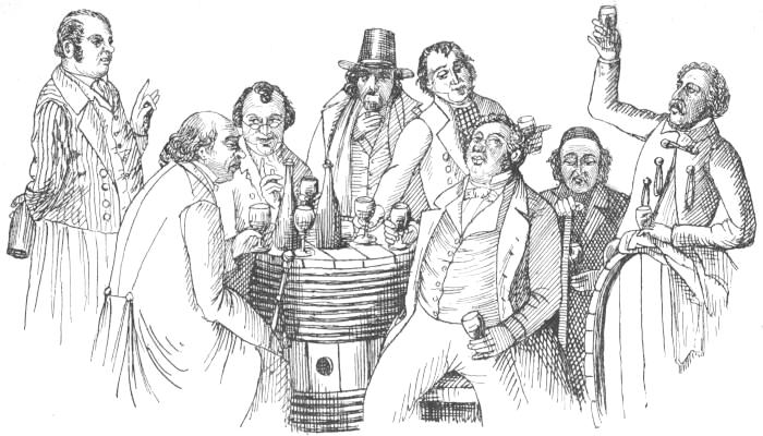 [104] Much has been written on the comparative merits of wine and beer. Perhaps as good a remark as any on this subject was made by a modern tradesman who, wishing to sell both, explained that, while strongly advocating the introduction of wine, he did not at all intend to depreciate the merits of our national beverage, beer. Where, he continued, plenty of out-door exercise is taken, and little intellectual effort is demanded, good beer is perhaps the most wholesome of all drinks; and therefore he advised the “labouring man,” who could not probably afford to buy wine, to drink beer, while others, who might be supposed able to afford wine, were warned that they could not drink beer with impunity.