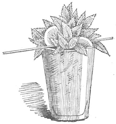 [101] The Slang Dictionary, however, defines Sling as a drink peculiar to Americans, generally composed of gin, soda-water, ice, and slices of lemon. At some houses (understand public) in London gin slings may be obtained. Francatelli has an exquisite note on Gin Sling, which he directs to be sucked through a straw. “I fear that very genteel persons will be exceedingly shocked at my words; but when I tell them that the very act of imbibition through a straw prevents the gluttonous absorption of large and baneful quantities of drink, they will, I make no doubt, accept the vulgar precept for the sake of its protection against sudden inebriety.”