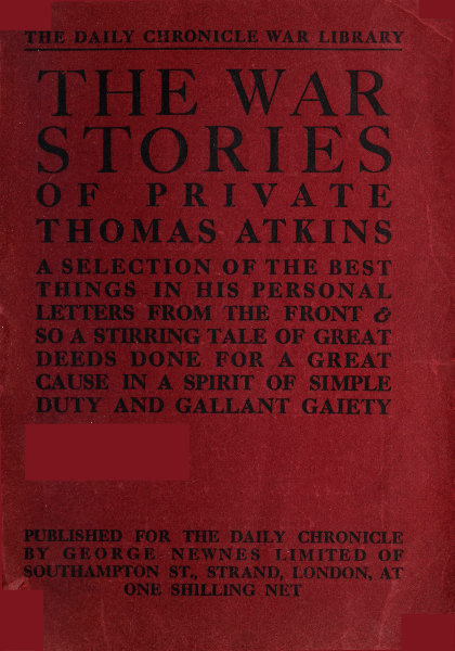 You like song, dear Private Atkins, its lilt and its sentiment, and you have been singing your way through battle, on the hills of France and the plains of Belgium. You are really a poet, as well as a first-rate fighting man, though the very idea will make your camp-fire rock with laughter. Well, in your letters from the war to the old folk and the young folk at home, you have written things worthy to be bound in cloth of gold.