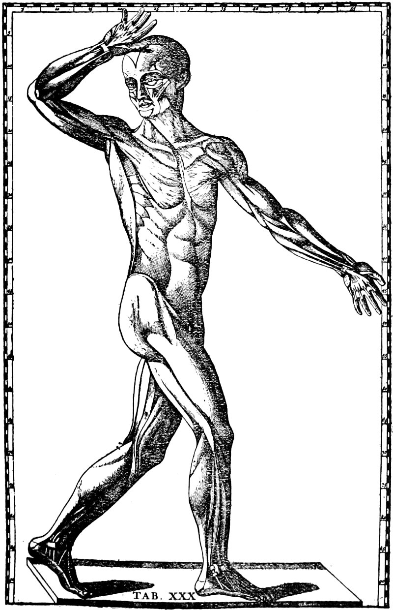 The year 1543 marks the date of a revolution which XI was won, not by force of arms but by the scalpel of an anatomist and the hand of an artist. The whole of human anatomy, as a study involving correct descriptions of the component parts of the body and accurate delineations thereof, may be said to have been founded by Andreas Vesalius and Jan Stephan van Calcar. As light pouring into a prism attracts little notice until it emerges in iridescent hues, so it was with anatomy: after passing through the brain of Vesalius it bore rich fruit which has been gathered by many hands. To turn from the writings of Galen, Mondino, Hundt, Peyligk, Phryesen, and Berengario da Carpi to the beauties of Vesalius’s De Humani Corporis Fabrica is like passing from darkness into sunlight. To both anatomists and artists this book was a revelation. For more than a century after its appearance the anatomists of Europe did little more than make additions to, and compose commentaries upon the conjoint triumph of Vesalius and van Calcar. For more than two centuries the osteologic and myologic figures of the Fabrica formed the basis of all treatises on Art-Anatomy.