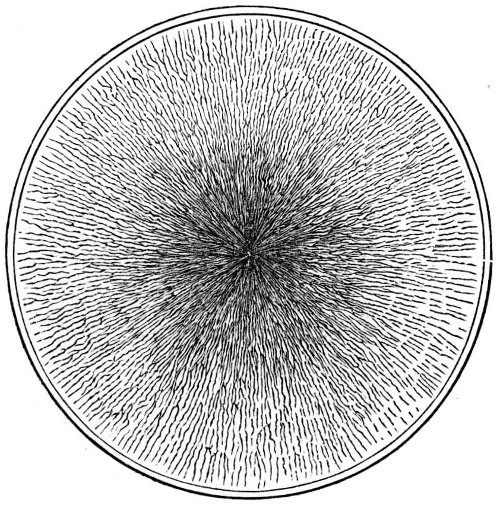 The moon being thus considered as evolved from the parent nebulous mass, and existing as an isolated and compact body, we had next to consider what was the effect of the continued action of the gravitating force. By the light of the beautiful “mechanical theory of heat” we argued that this force, not being destructible, but being convertible, was turned into heat; and that whatever may have been the original condition of the parent nebulous mass, as regards temperature, its planetary offspring became elevated to an intense degree of heat as they assumed the form of spheres under the influence of gravitation.