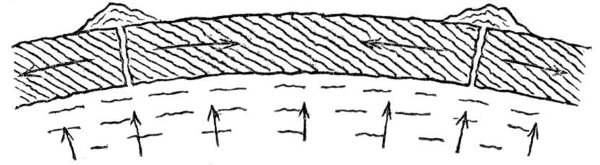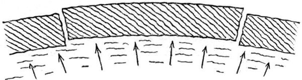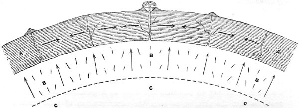 - Cooling commenced from Outer Surface—Contraction by Cooling—Expansion of Molten Matter upon Solidification—Water not exceptional—Similar Behaviour of Molten Iron—Floating of Solid on Molten Metal—Currents in a Pot of Molten Metal—Bursting of Iron Bottle by Congelation of Bismuth within—Evidence from Furnace Slag—From the Crater of Vesuvius—Effects of Contraction of Moon’s Crust and Expansion of Interior—Production of Ridges and Wrinkles—Theory of Wrinkles—Examples from shrivelled Apple and Hand